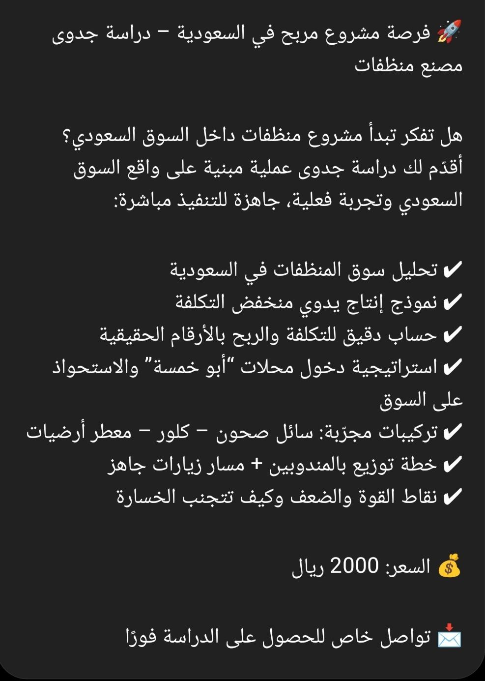 دراسة جدوى مصنع منظفات دراسة مشروع منظفات السعودية مشروع مصنع منظفات مربح دراسة منظفات السوق السعودي مصنع منظفات خطة جاهزة
