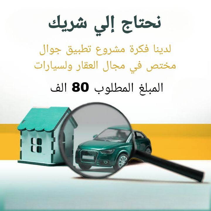 نحن فريق نعمل في شركة مختصه في مجال تقنية معلومات ولدينا فكرة تطبيق جوال ونحتاج الى شريك دائم، المشروع في مرحلة التصميم، فكرة المشروع عبارة عن تطبيق جوال في مختص مجال العقارات ولسيارات ولكن بشكل جديد ومطور وتم اضافة أفكار تنافسيه المبلغ المطلوب 80 ألف ريال، ونسبة الشريك 60 في مائة باقي التفاصيل عند التواصل، مكتبنا في الرياض