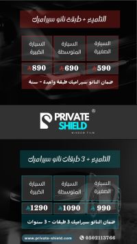 في شركة برايفت شلد للعناية بالسيارات اختيارك الأفضل ارتاح وسلم المفتاح - الفنيين من دولة الفلبين للتواصل والحجز عرض خاص على حماية PPF الأمريكية الأصلية بالمعالجة الذاتية لحماية طلاء سيارتك من الخدوش ضمان التركيب بأيدي فنيين من الفلبين ضمان الجودة ضمان لمدة 10 سنوات منتج أمريكي السعر مفاجأة أسال عن عروض الأسبوع
