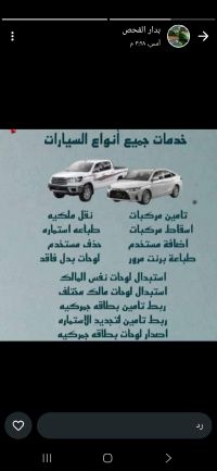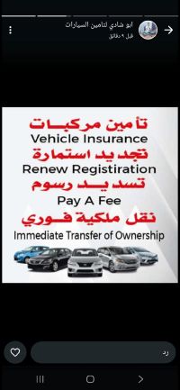 شغال تأمين سيارات ونقل ملكية فوري تجديد استمارة اضافة مستخدم حذف مستخدم أقل أسعار للتأمين ضد الغير والتأمين الشامل خدمات تعقيب مرور اسقاط سيارات استبدال لوحات