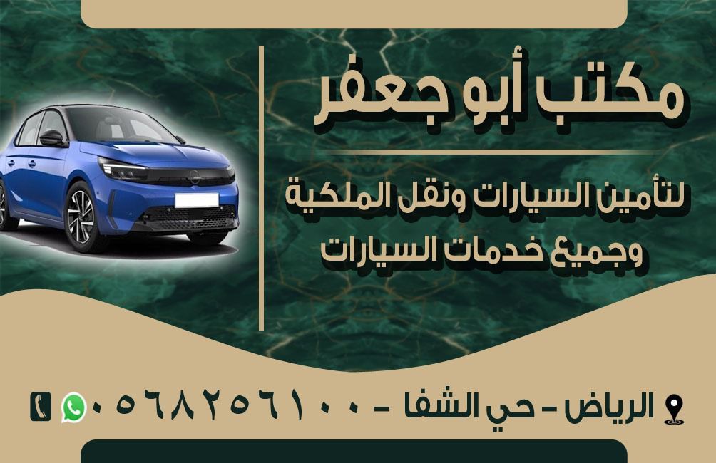 Peace, mercy, and blessings of God be upon you. Abu Jaafar for car insurance, ownership transfer, and all car services. Riyadh, Al - Shifa district. For inquiries and
