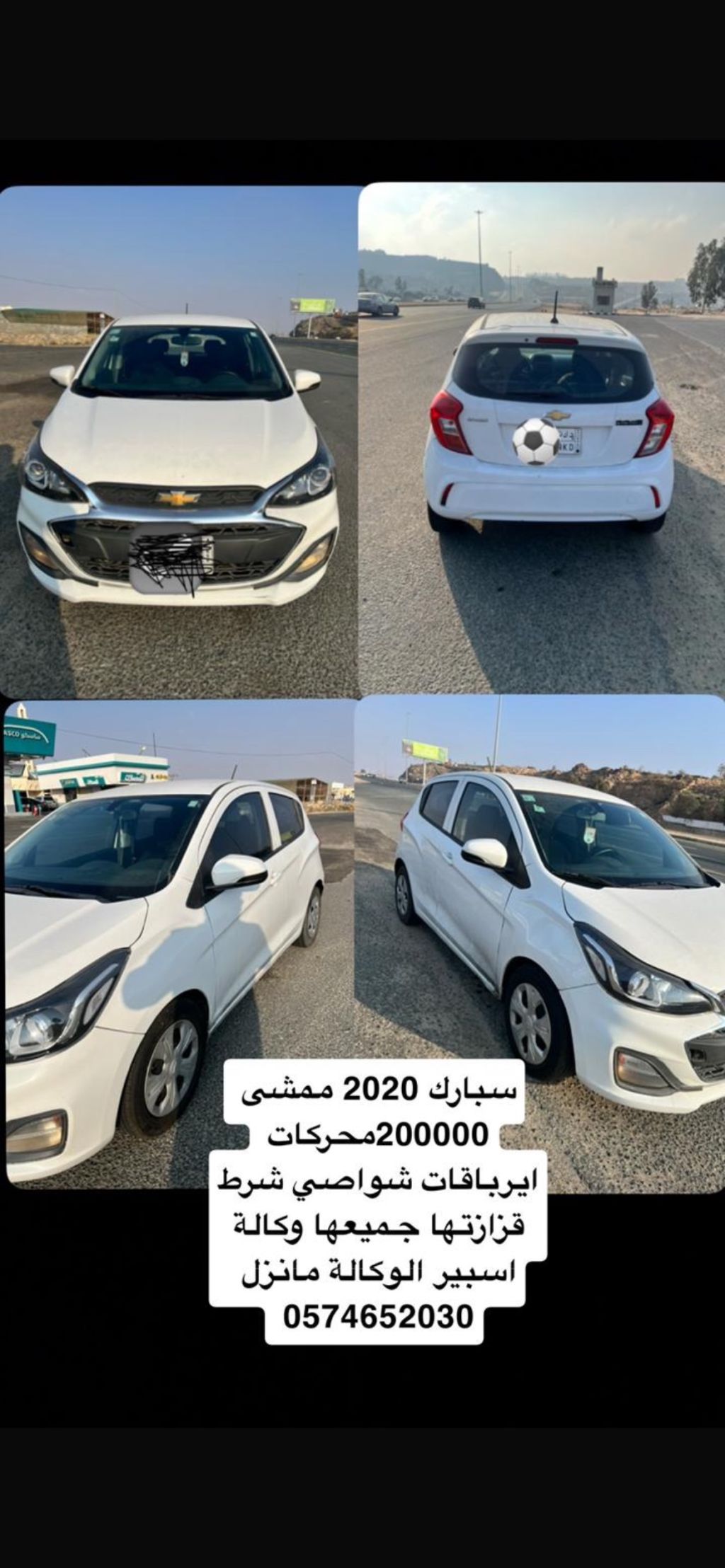 للتواصل: 0574652030. نوع السيارة: شفروليه سبارك. الموديل: 2020. الممشى: 202,000 كم. عليها حكات بسيطة. المحرك نظيف، ما شاء الله.
