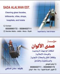 Sada Al Alwan Company for cleaning glass facades, billboards, villas, offices, shops, hotels, and apartments