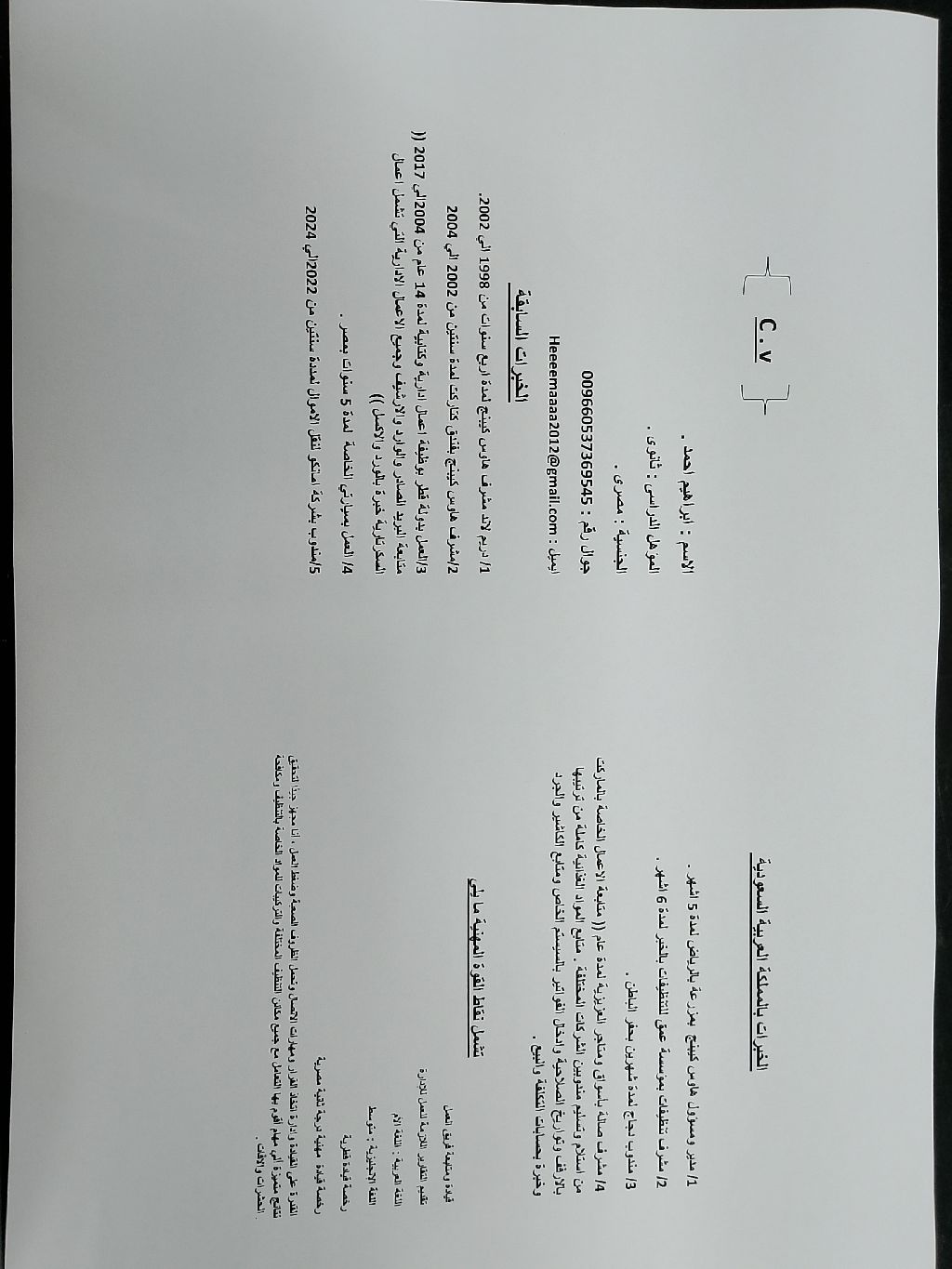 الاشراف علي النظافة ومتابعة العمال والتعامل مع جميع مكائن التنظيف مجالس وسجاد وستائر ومواد التنظيف المختلفة