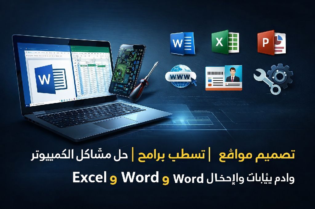 خدمات كمبيوتر شاملة تصميم مواقع تشطيب برامج حل مشاكل اللابتوب Excel وWord وادخال بيانات. تصميم مواقع مبرمج مواقع تشطيب برامج حل مشاكل الكمبيوتر صيانة كمبيوتر ادخال بيانات Excel Word PowerPoint Access دعم فني كمبيوتر تصميم بزنس كارد انشاء مواقع شركات شراء دومين واستضافة خدمات كمبيوتر