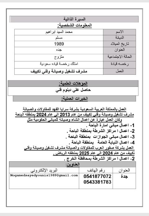 مشرف تشغيل وصيانة وفني تكييف مصري يبحث عن عمل مناسب وجاهز حاليا لبدء العمل ومتاح نقل كفالة خبرة في أعمال التشغيل والصيانة بالمملكة أكثر 10 أعوام