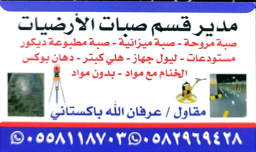 مقاول صبة الأرضيات صبة مروحة صبة ميزانية صبة مطبوعة ديكور مستودعات لايزر جهاز هليكوبتر دهان بوكس رخام مع مواد أو بدون مواد جودة عالية سرعة في التنفيذ أسعار مناسبة للتواصل المقاول عرفان الله الباكستاني. رقم