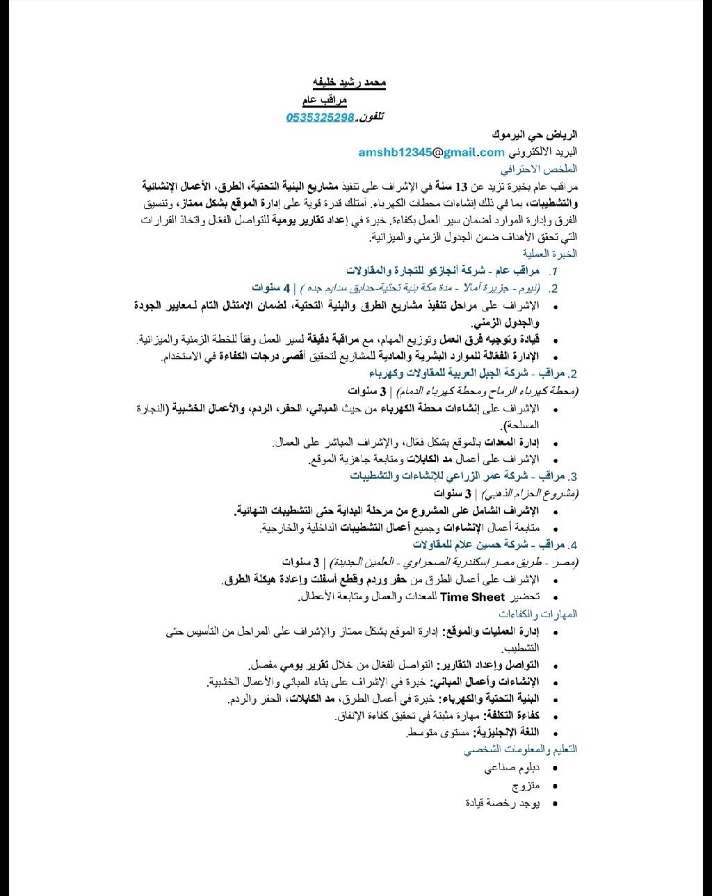 أنا مراقب ابحث عن عمل، العمال الطرق الحفريات وردميات وبنية تحتية والعمال التشطيبات، وسبق أن اشتغلت في العديد من المكان مثل نيوم وآمالا مدى مكة ومكة نفسها وجدة سدايم عندي القدرة علي إدارة الموقع التعاون مع القائمين على عمل بشكل جيد ورفع التقارير اليوميه كما اعمل علي رفع كفاءة العمل السريعه
