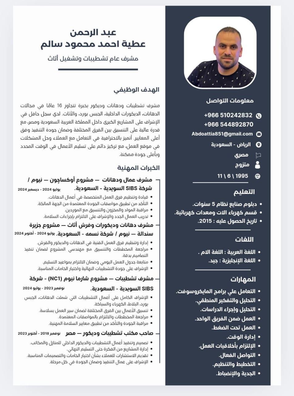 مشرف تشطيبات ابحث عن فرصة عمل متواجد في الرياض