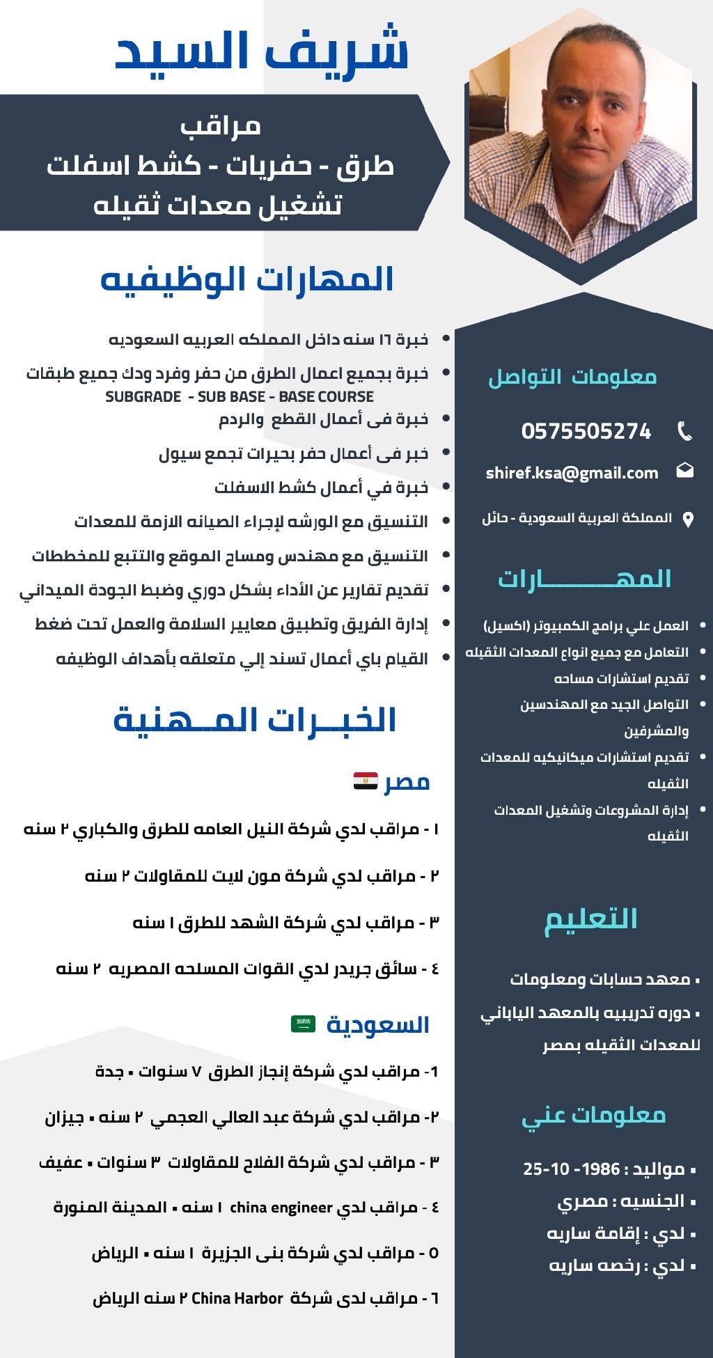 مراقب طرق وحفريات وكشط اسفلت وتشغيل معدات ثقيلة خبرة وظيفة 16 سنة