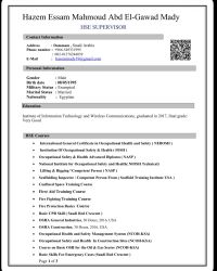 مشرف سلامة وصحة مهنية بخبرة سبع سنوات في مشروعات الإنشاءات والبنية التحتية، ابحث عن فرصة عمل في مجال السلامة والصحة المهنية داخل المملكة العربية السعودية الشهادة المعتمدة NEBOSH / IOSH/ NASP Diploma/ Lifting and Rigging/ Scaffolding Competent Person/ OSHA General Industry - 30 Hrs/ OSHA Construction - 30 Hrs/ NCOH - KSA Certificates in OSH Management, Construction, and Oil & Gas