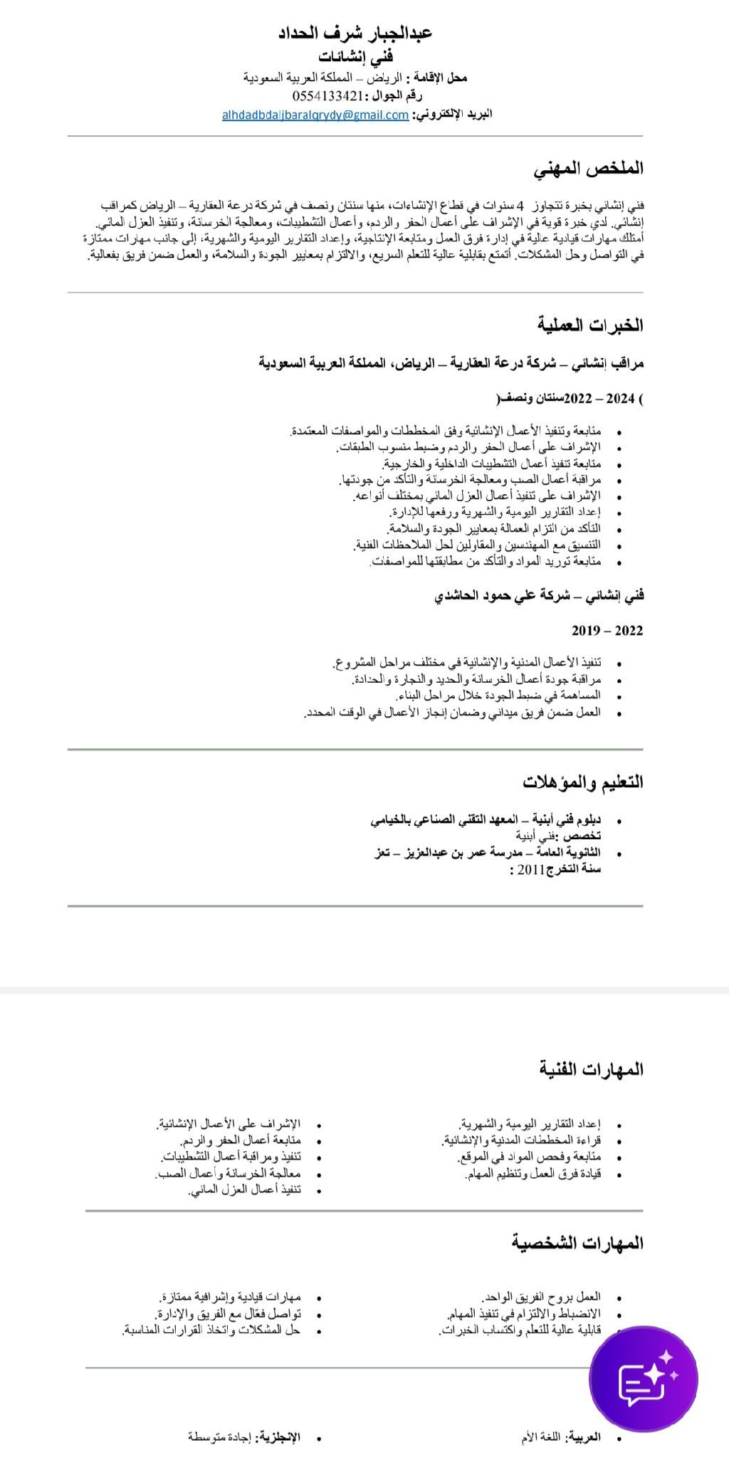 يطلب عمل مقاولات في السعودية
