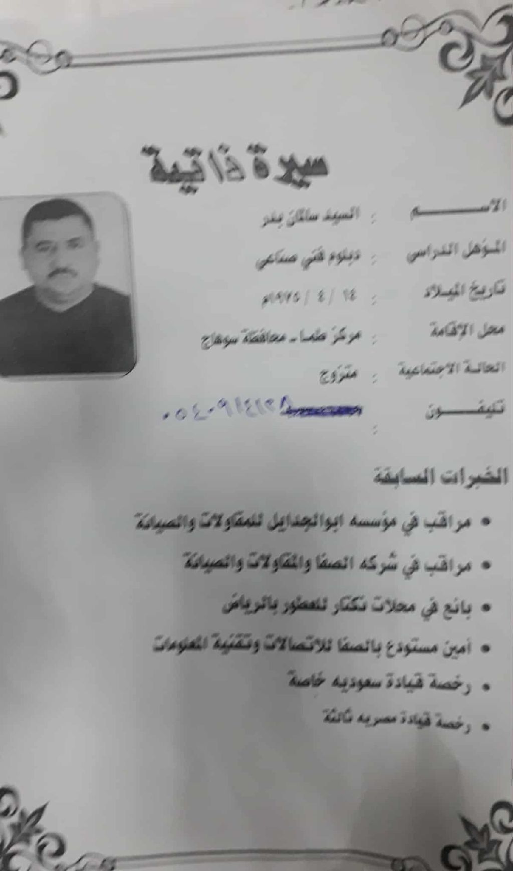 اشتغلت مراقب واشتغلت أمين مستودع وبياع في محل معي رخصة سعوديه خاصه المهنة عامل قابلة للتحويل السن 49 سنة هوه مستعد يشتغل أي