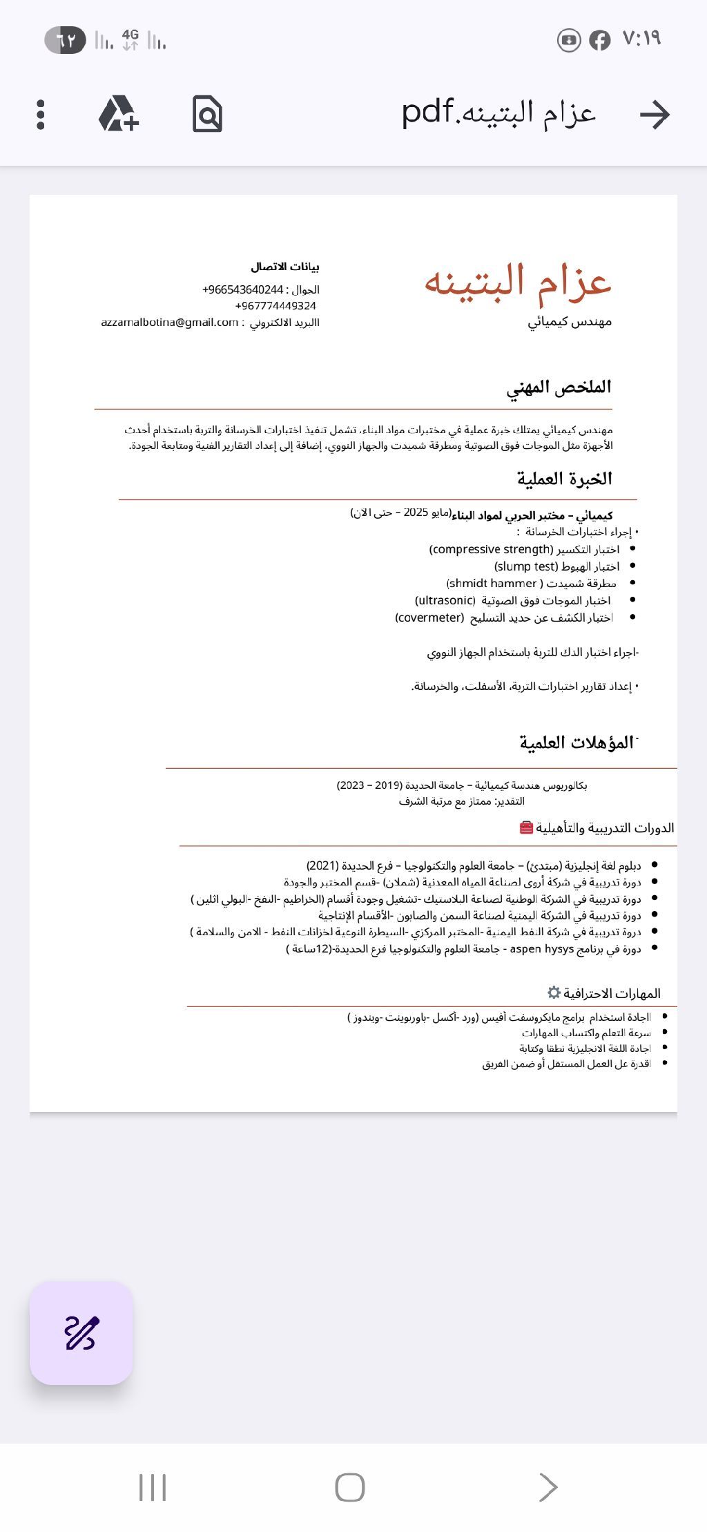 مهندس كيميائي يبحث عن عمل فني مختبر تربة أو خرسانة أو مراقب جودة بمصنع خرسانة. خبرة في اختبارات التربة والاسفلت والخرسانة، واختبار الدك بالجهاز النووي، واختبارات الموقع (شميدت وكفرميتر) واعداد التقارير الفنية وفق المواصفات. متاح للعمل فورا داخل السعودية