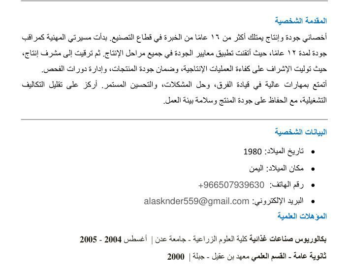 أخصائي رقابة جودة اغذيه خبرة 16 عاما في الجودة والانتاج مقيم في السعودية وجاهز للعمل فورا