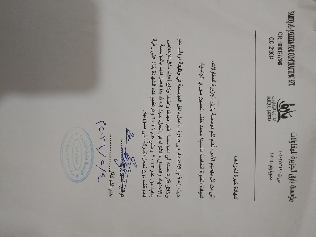 مراقب عام خبرة 10 سنوات في البنيه التحتية والطرق والانشاءات اتصالات طرق حفر ردم