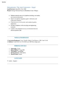 مساح خبرة + 8 في مجال البنية التحتية شبكات صرف صحي ومياه شرب متاح نقل كقالة وإقامة سارية 10 أشهر