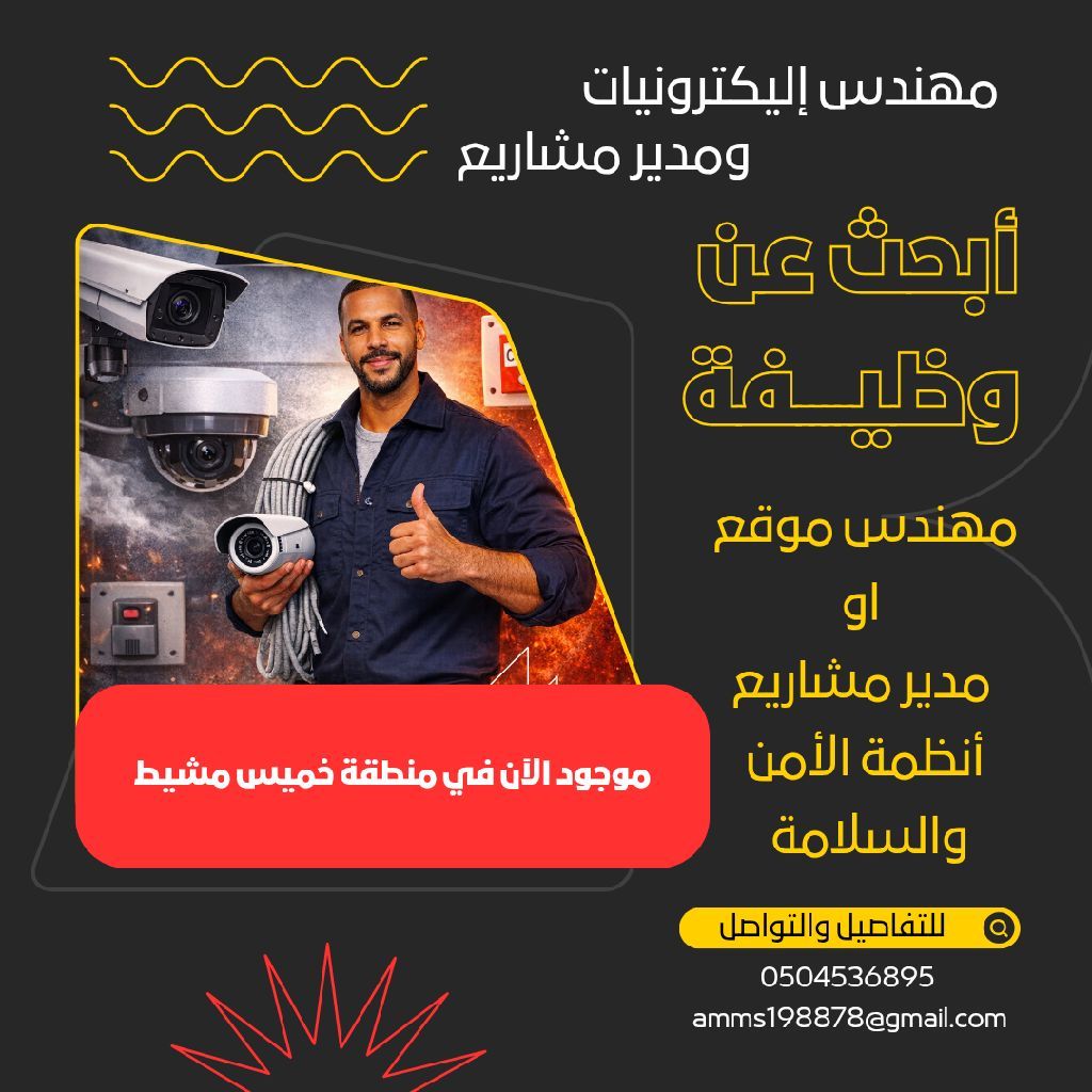 مهندس الكترونيات خبرة في ادارة المشاريع في واسطة برنامج Primavera p6 للتواصل يرجى التواصل عبر واتساب أو اتصال متاح للعمل داخل منطقة خميس مشيط أو أي منطقة قريبة جاهز للعمل فورا وتقديم أفضل أداء في مجال الأمن والسلامة