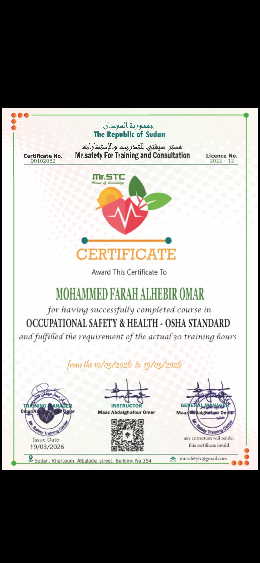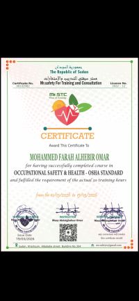 مشرف سلامة يتمتع بخبرة تمتد لأكثر من 7 سنوات في تطبيق أنظمة واجراءات السلامة المهنية، والحد من المخاطر في بيئات العمل المختلفة. لديه قدرة عالية على تقييم المخاطر، وتطبيق معايير السلامة، وضمان الالتزام باللوائح المحلية والدولية، مع سجل متميز في تقليل الحوادث وتحسين بيئة العمل إجراء تقييم المخاطر (Risk Assessment) بشكل دوري وتحديثها حسب الحاجة