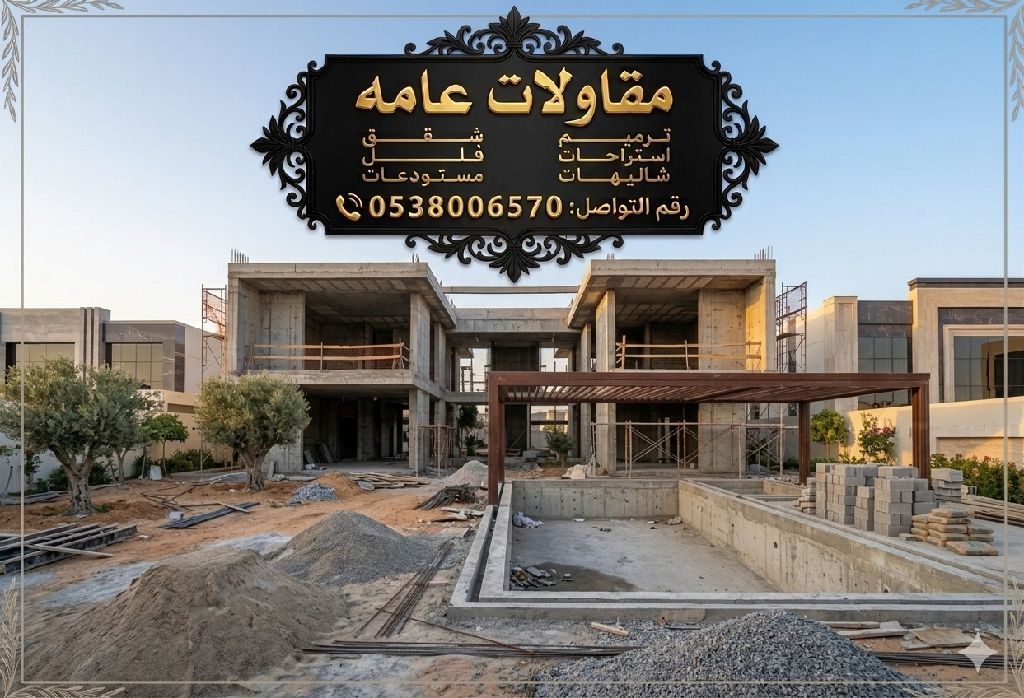 مقاولات عامة شقق فلل مستودعات استراحات شاليهات ترميم
