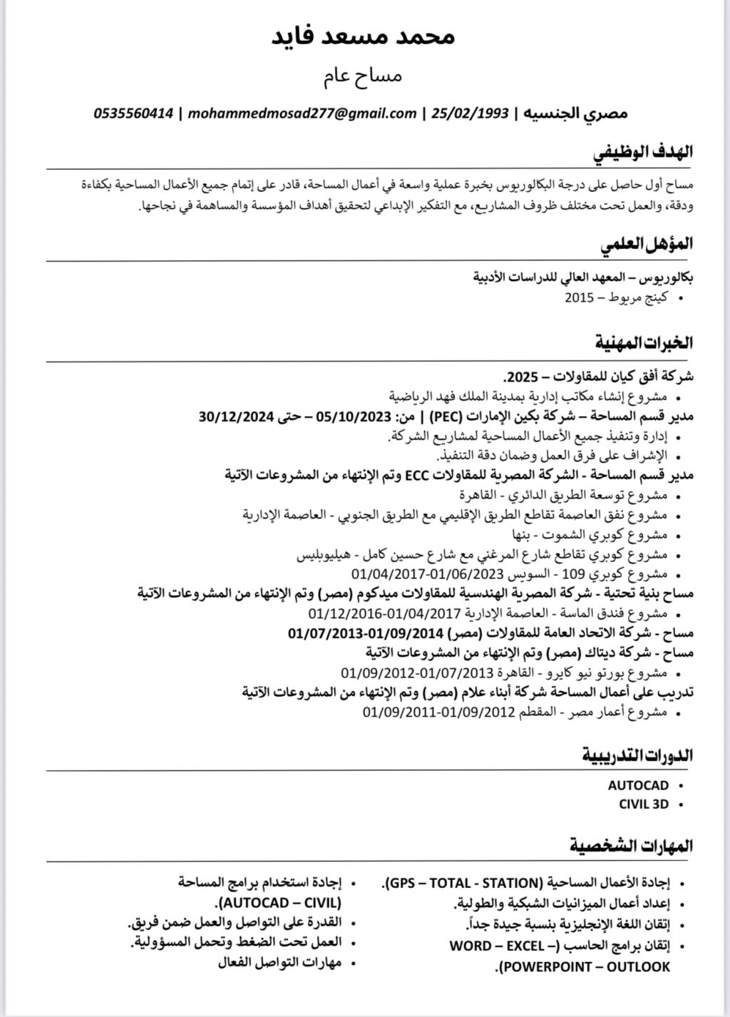 مساح عام خبرة 10 سنوات أجيد أعمال المكتب الفني والعمل علي جميع الاجهزة المساحية