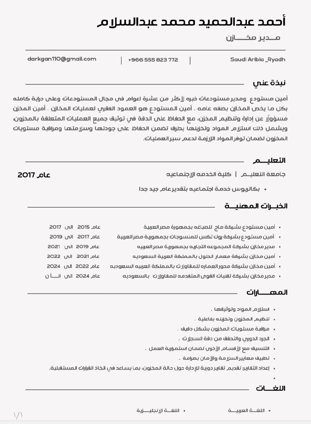 أمين مستودع خبرة ابحث عن عمل بالاضافة الى إقامة سارية ورخصة قيادة