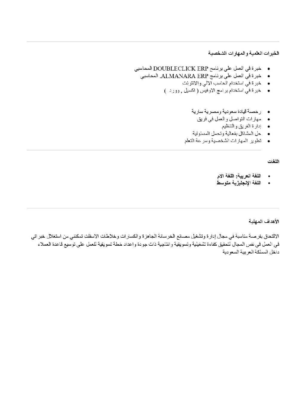 خبرة أكثر من 9 سنوات في إدارة وتشغيل مصانع الخرسانة والكسارات وخلاطات الاسفلت. اشتغلت مشرف عام، وبعدها مدير مصنع، وحاليا أخصائي إدارة مشاريع. شغلي دايما بيكون على التشغيل اليومي، الجودة، المبيعات، وحركة المعدات. اعمل تحت ضغط وبقدر ارتب شغل المواقع والمصنع بشكل يضمن الانتاج المستمر وتحقيق أهداف الإدارة. أنا جاهز اشتغل من أول يوم، ومعيا خبرة تشغيل حقيقية في المصانع والكسارات والمبيعات