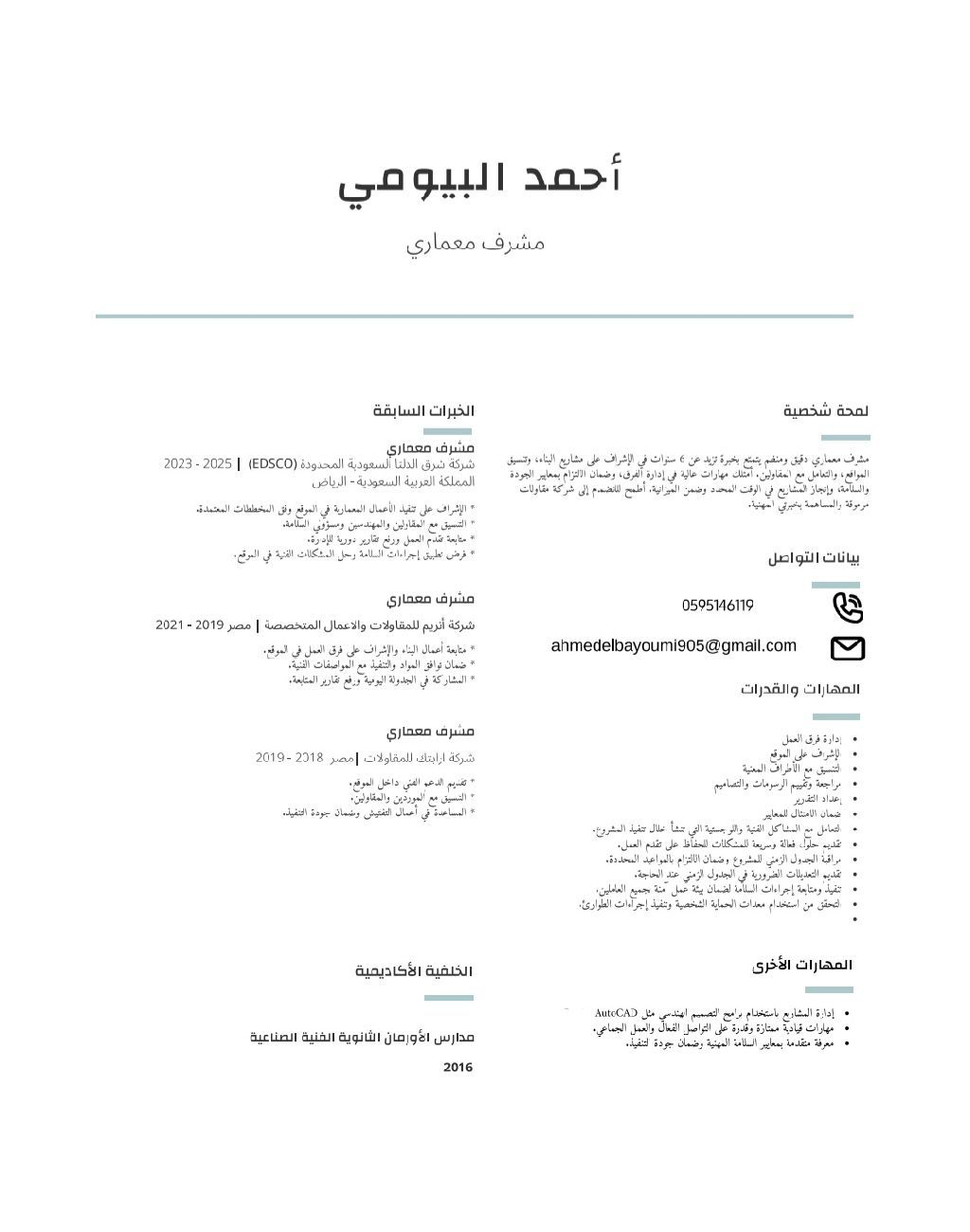ابحث عن فرصة عمل مشرف معماري خبرة 3 سنوات في مصر و3 سنوات داخل المملكة العربية السعودية