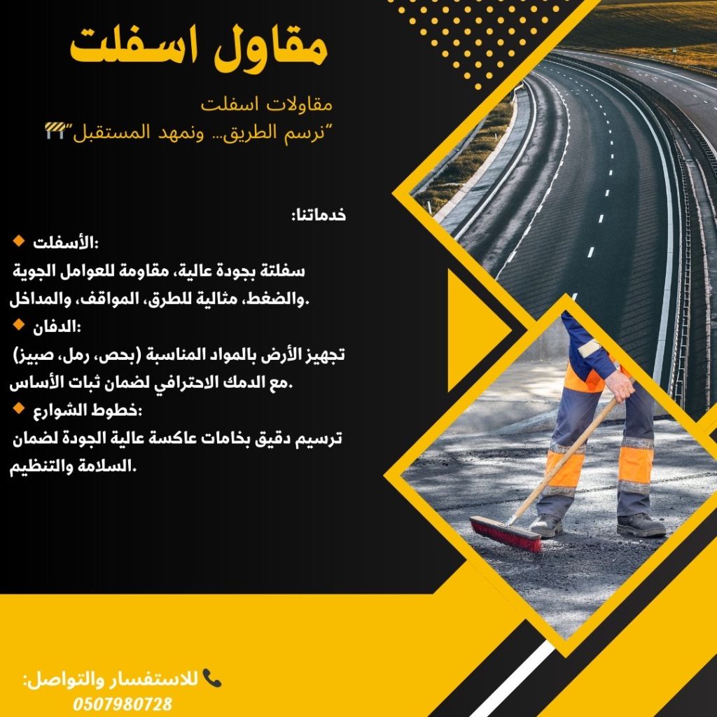 مقاولات اسفلت ودفان وخطوط طرق بأفضل جودة