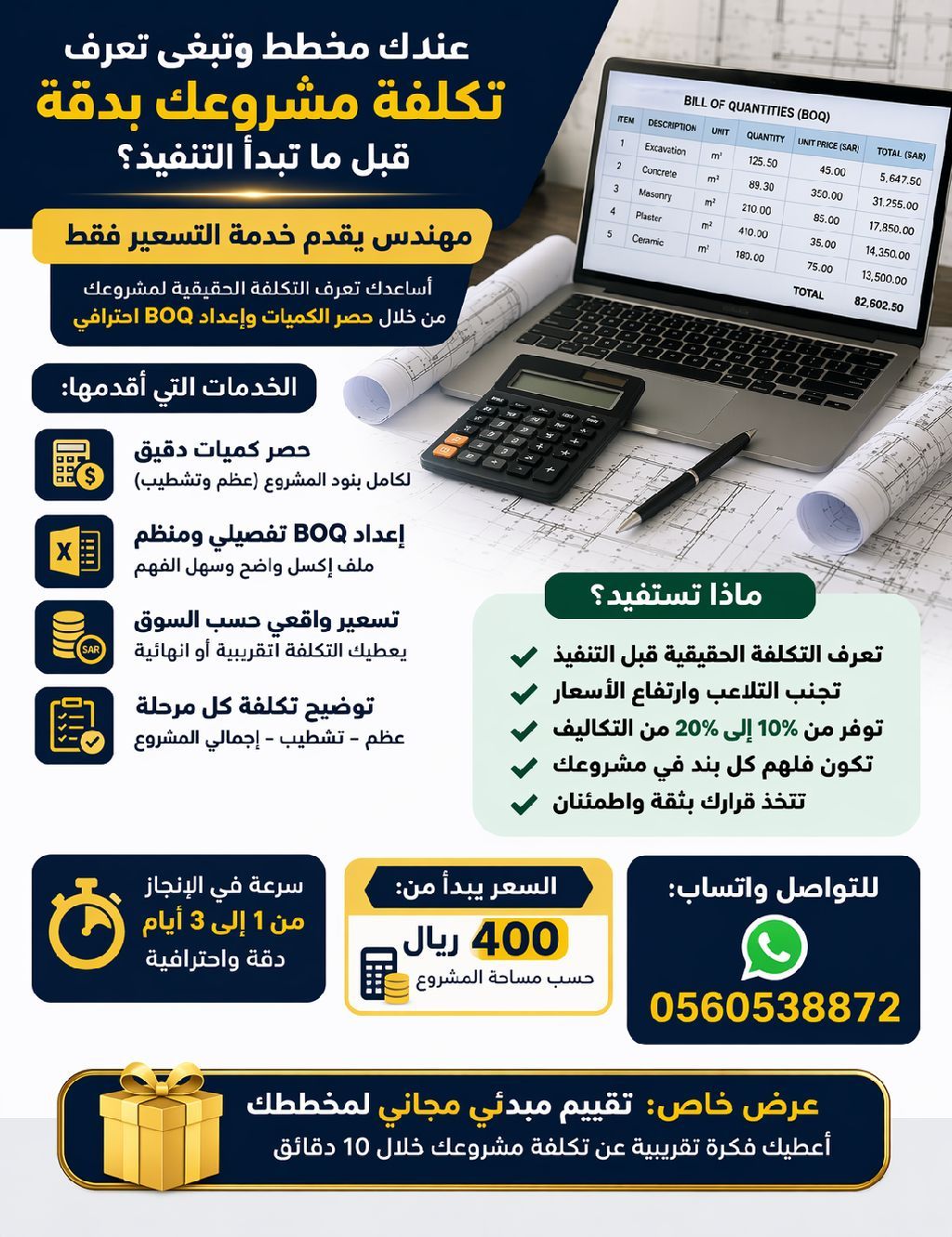 أعمال التسعير لمشاريع المقاولات جميع الأعمال والبنود