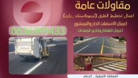 أعمال الاسفلت وتوريدها أعمال الاسفلت الم بشاور وتوريدها تخطيط الطرق والمواقف (حار - بارد) أعمال التربة بسكورس وصبيز وطين وتوريدها أعمال الهناكر رش مادتي 1 و2 تأجير معدات الاسفلت تأجير قشاطات الاسفلت ازالة وترحيل وقشط المواقع القديمه واعادة تهيئة للتواصل اتصال