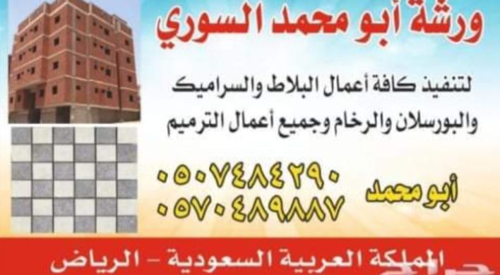مقاول ومعلم مبلاط وسيراميك الرخام بر وسلان نوافير شلالات جبسون بورد لياسة تنفيذ جميع أعمال الترميم والصيانة في الرياض