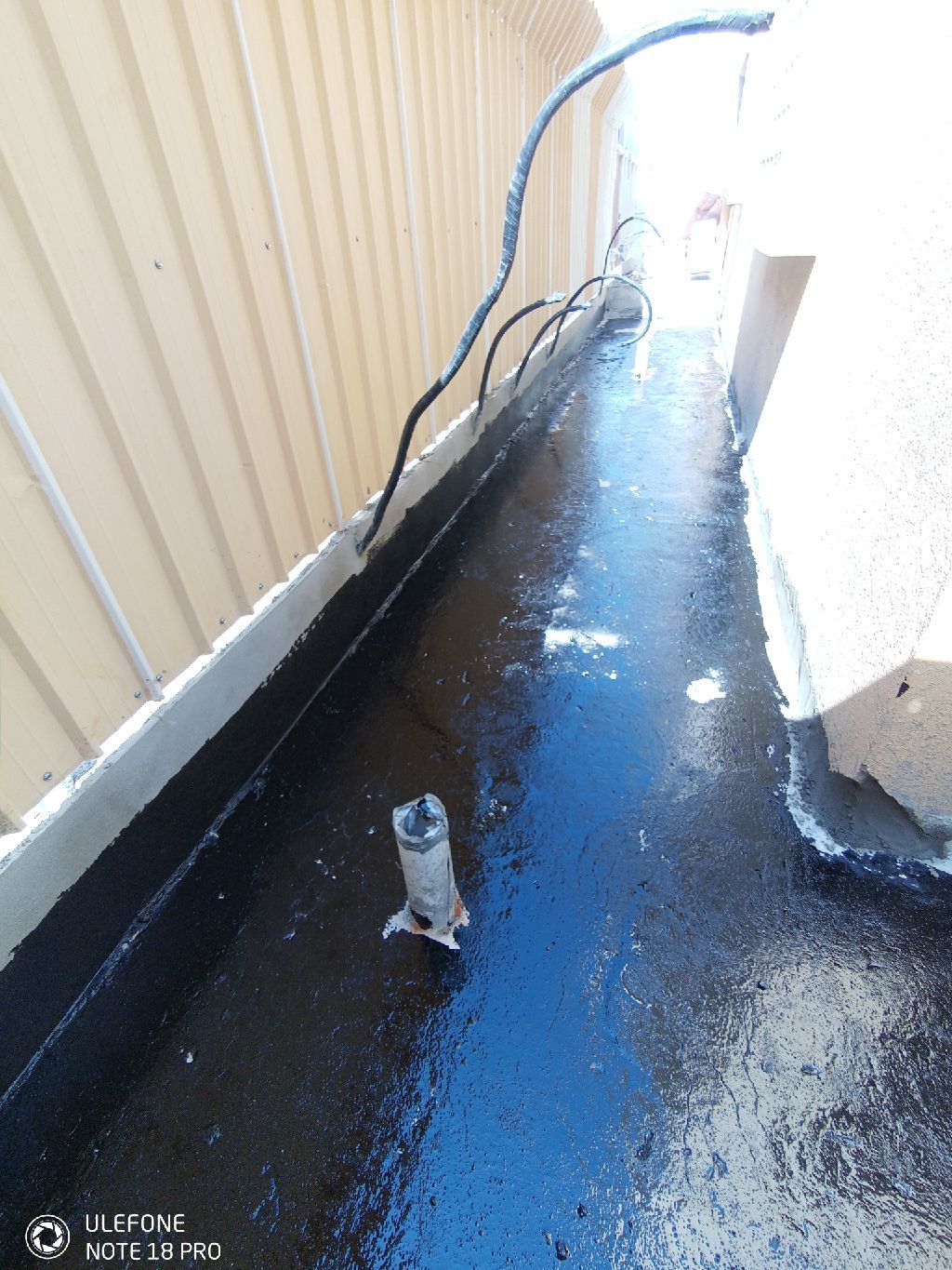 بعد الانتهاء من صبه الفوم كونكريت الرغوية نقوم بعمل وزره دائريه بزاوية 90 وبعدها عمل دهان البرايمر الأساس المقاول للرطوبة والملوحة ثم نقوم بفرد لفايف الممبرين وكويها بالنار واختبار العزل لمدة 48 ساعة