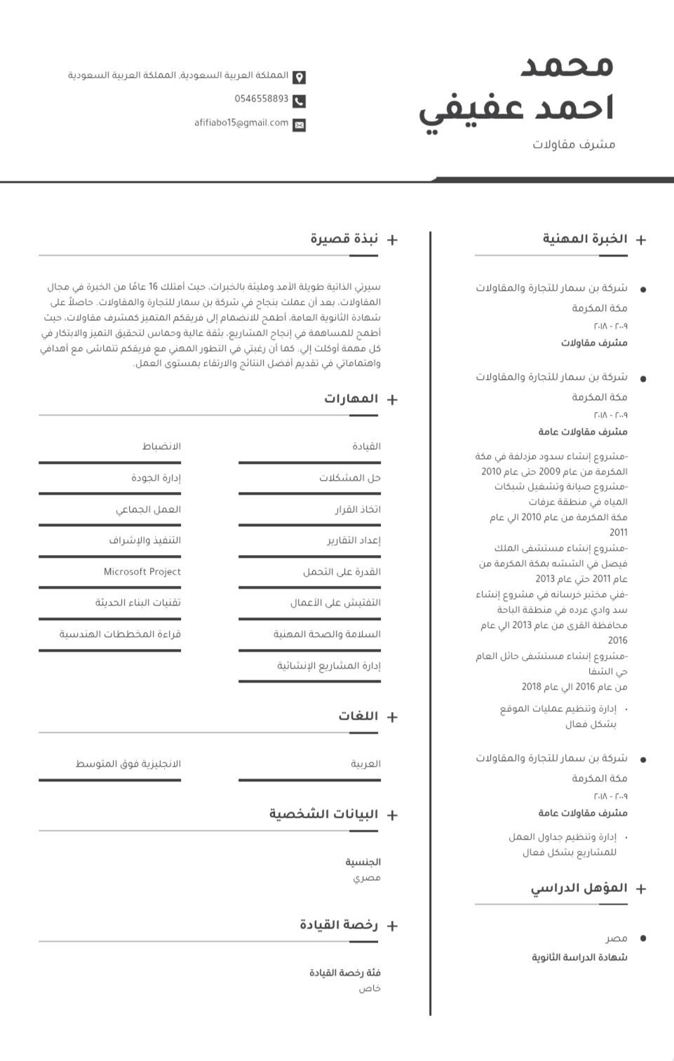 مشرف مقاولات عامة مصري عمل بشركة بن سمار للمقاولات سابقا حيث يمتلك من الخبرة أكثر من 9 أعوام ويجيد العمل علي الكمبيوتر ابحث عن عمل