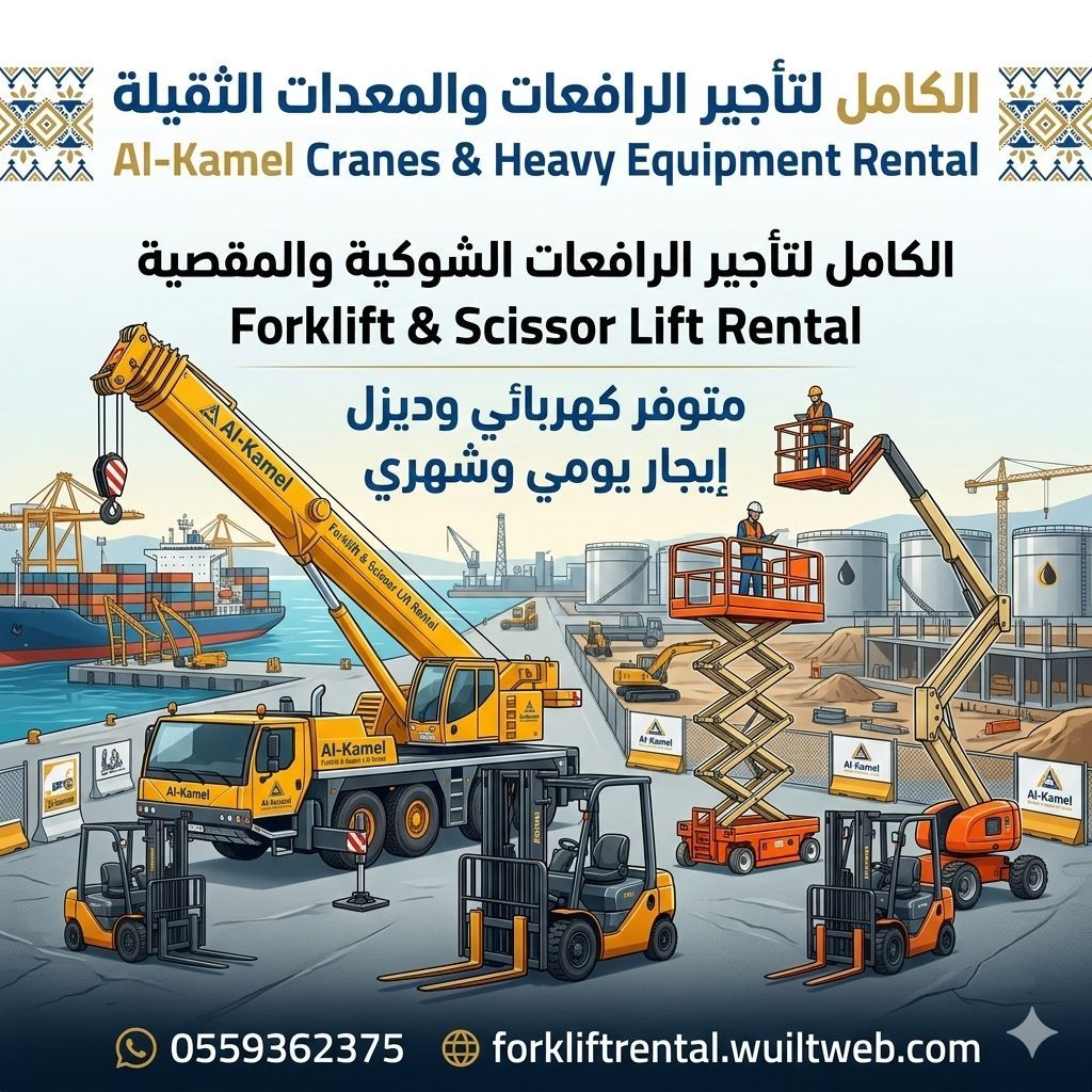 الأقوى في تأجير الرافعات والمعدات في السعودية هل عندك مشروع أو مستودع أو مصنع وتحتاج معدات رفع بشكل عاجل نحن في الكامل لتأجير الرافعات الشوكية والسيزرات لفت والكرينات نوفر لك أفضل الحلول وبأسعار منافسة رافعات شوكية (فوركلفت) كهرباء وديزل سيزرات لفت (رافعات مقصية) للعمل في الارتفاعات كرينات لمختلف أعمال الرفع موديلات حديثة وجاهزة للعمل تأجير يومي - أسبوعي - شهري نخدم أل