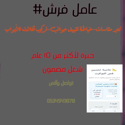 موجود أربعه معلمين بويه اقامات مهنية محتاجين شغل باليوميه أو بالمتر رقم التواصل