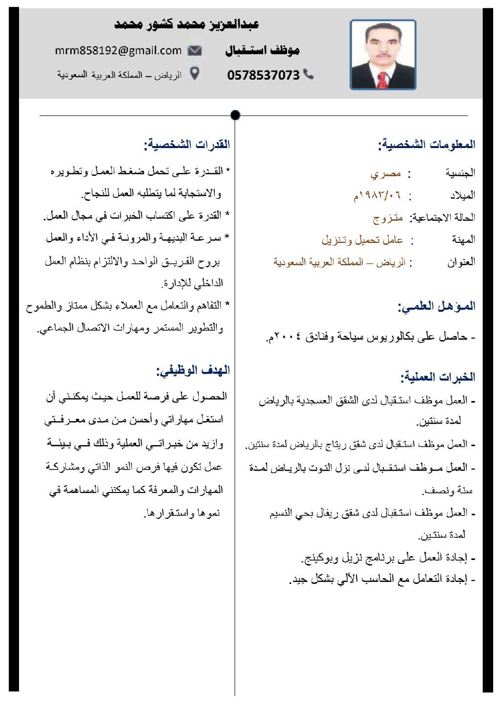 شاب مصري لدي مؤهل سياحة وخبرة بمجال الفنادق والضيافة ابحث عن عمل استقبال باحدى الأجنحة الفندقية لدي الخبرة للعمل على نزيل وبوكينج