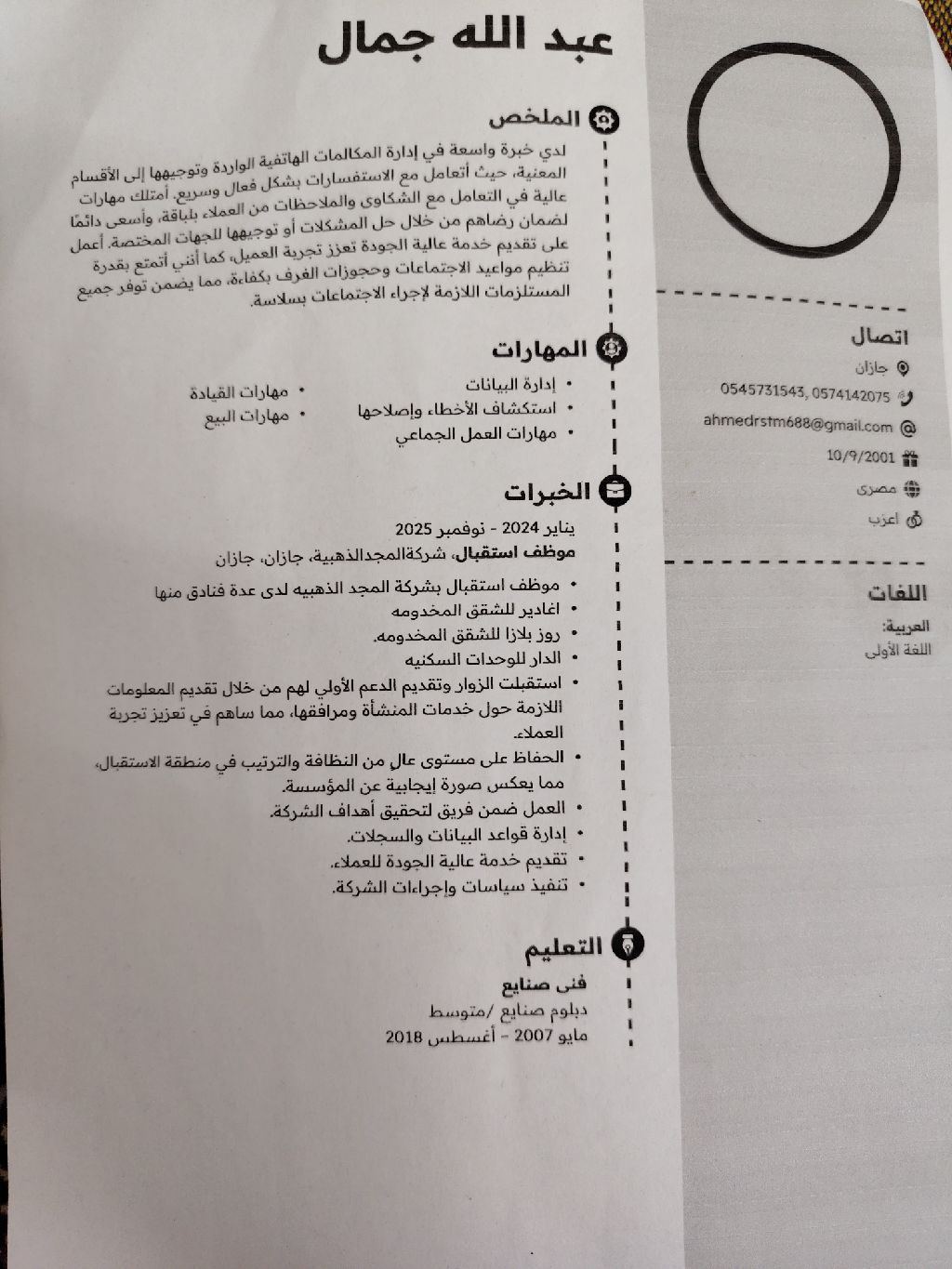موظف استقبال فندق أحتاج وظيفة مقيم في جازان