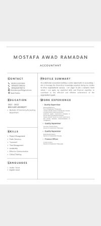 حاصل على بكالوريوس تجارة قسم محاسبه ومراجعة لدي خبرة في العمل بمصنع سامسونج للشاشات 3 سنوات مراقب جودة وتم العمل بمصنع توشيبا العربي 3 سنوات مراقب جودة وتم العمل بمصنع السويسرية للملابس الجاهزة سنة اجمالي الخبرة مراقب جودة 7 سنوات وخبرة 3 سنوات في شركة تمويل للمعاملات الماليه وحاليا مقيم في الدمام وجاهز للتنقل لأي مكان بالمملكة العربية السعودية