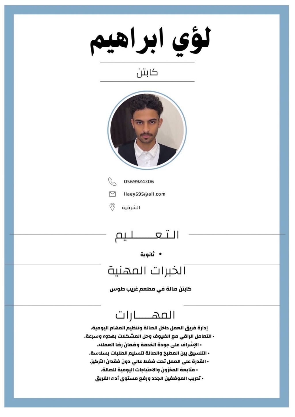 أنا لؤي كابتن صالة ابحث عن عمل في جميع أنحاء المملكة. ابحث عن عمل كبتن أو وايتر أو استقبال أو خدمة عملاء أو كاشير لكن ما عندي خبرة في الجهاز