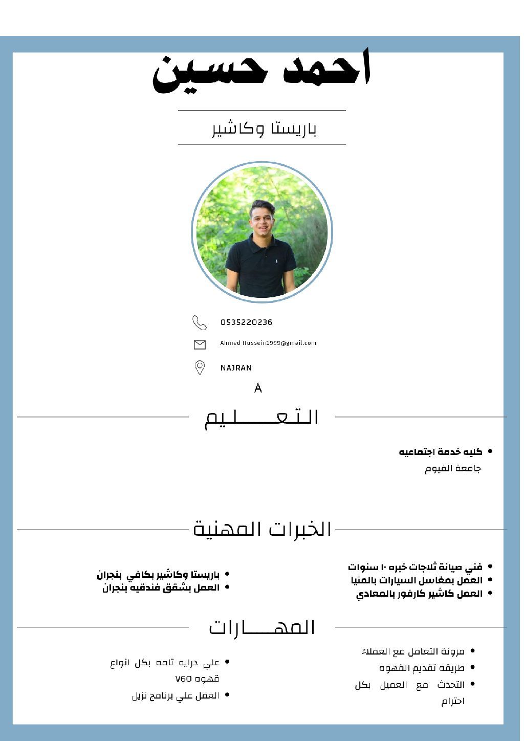 ابحث عن عمل كاشير أو باريستا ومعي الكارت الصحي خبرة بالمجالات