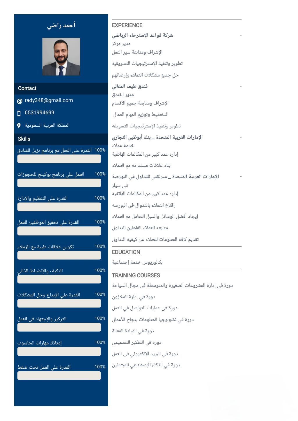 موظف محترف (استقبال / خدمة عملاء / كول سنتر) يطلب عمل - خبرة وجاهزية ابحث عن فرصة عمل في مجال الاستقبال، خدمة العملاء، أو الكول سنتر في المنطقة الشرقية - خبرة في التعامل المباشر مع العملاء واللباقة في الحديث. مهارات عالية في التواصل الهاتفي (Inbound / Outbound) القدرة على الاقناع وتحقيق مستهدفات المبيعات (Tele - sales) اجادة استخدام الحاسب الآلي وسرعة التعلم