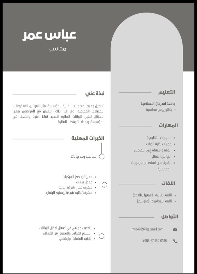 الجنسية سوداني ابحث عن عمل الخبرة العملية 1 مشرف عمال 2 مدخل بيانات ومسؤول فرع حجز مركبات خبرة 2 سنة ابحث عن عمل في أي مجال خريج جامعة أم درمان الاسلامية بكالوريوس محاسبة