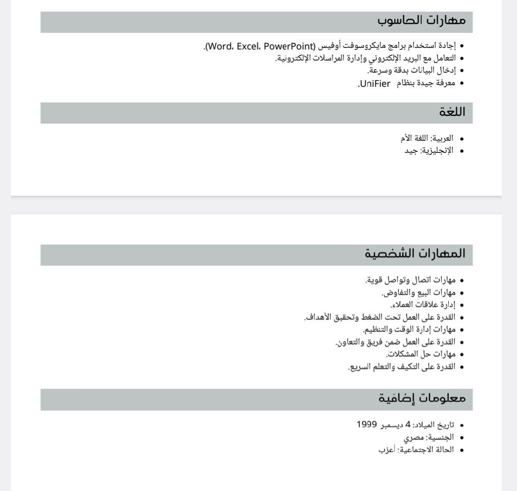 مدخل بيانات حديث تخرج لدي خبرة في استخدام برامج Excel وERP وUnifier، بالاضافة الى مهارة ادخال البيانات بدقة وتنظيم، والتعامل مع التقارير ومتابعة البيانات بشكل جيد
