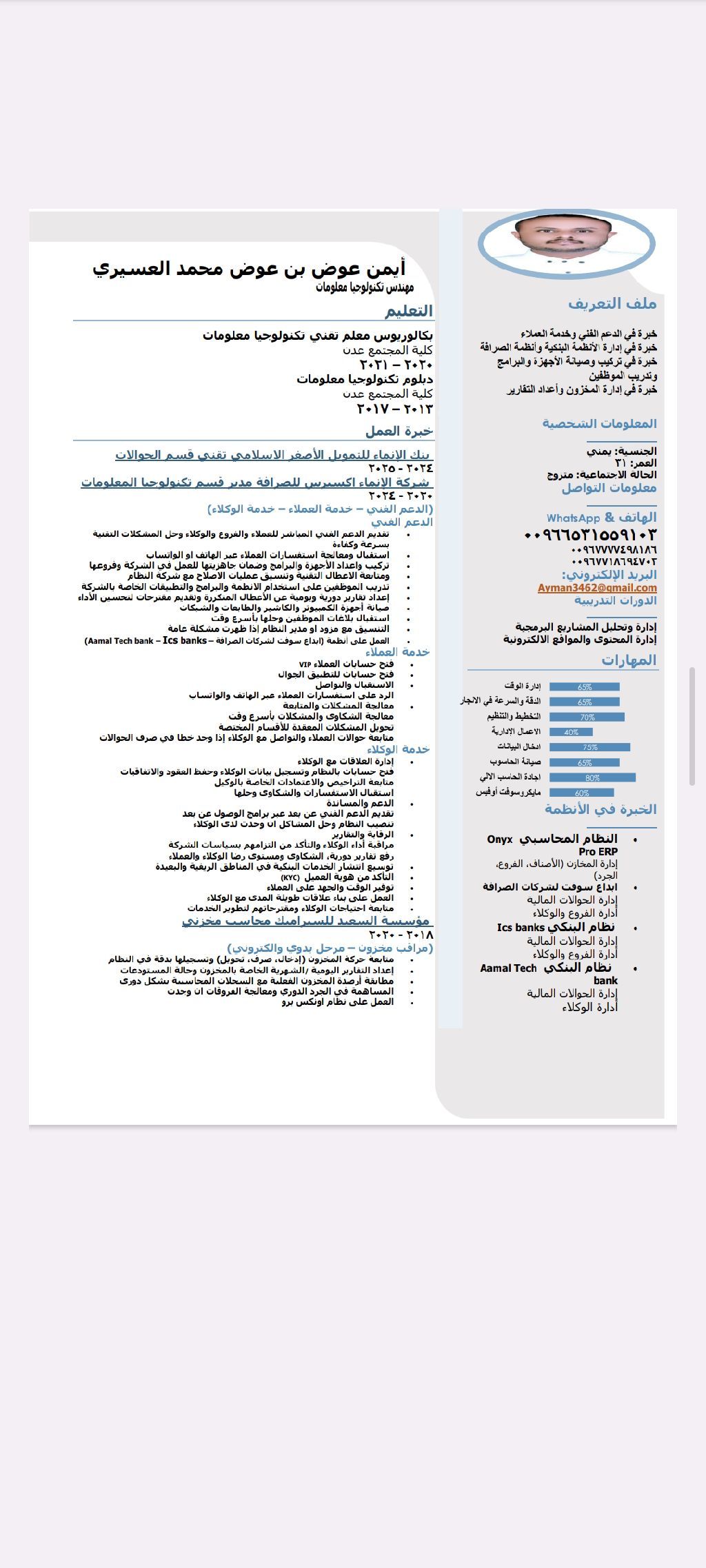 أنا أيمن عوض مهندس دعم فني تكنولوجيا معلومات ابحث عن عمل وظيفة متواجد حاليا في الرياض من لدية شاغر وظيفي يرجى التواصل معي دعم فني عمالة منزلية وا عملاء تواصل صيانة حاسوب والسيرة الذاتية مرفقة