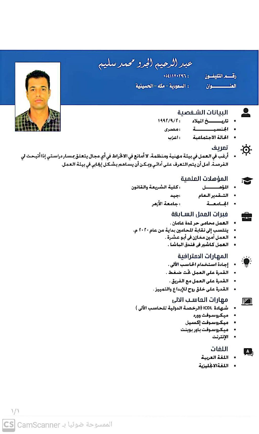 عندي خبرة أكثر من سنتين في وظيفة مدخل بيانات وكاشير في السعودية وغير مدخن ومتفرغ تماما للعمل وجاد في عملي