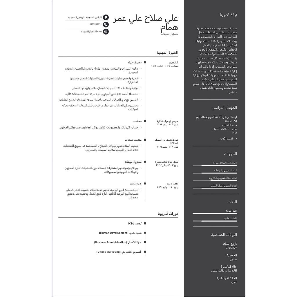 الاسم علي صلاح المؤهل ليسانس لغة عربية السن 28 سنة ابحث عن عمل (الخبرات في حسابات. تنظيم حفلات - أمين مستودع - كافيهات مشرف حركة ومنسق صيانة وgbs تدريس - الجولات - معرفة ببرامج الأوفيس أكسيل وورد) دايما اسعي نحو الارتقاء بالعمل والاجتهاد الى الرقي بعملي والسعي الى النجاح طموح الى تحقيق الأهداف إقامة سنة قابلة للنقل