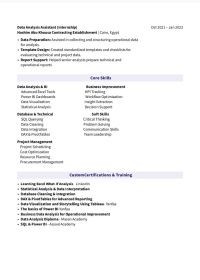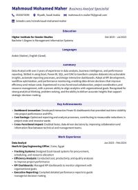 Business Analyst with hands - on experience in business data analysis, preparing managerial and executive reports, and monitoring KPIs to support decision - making and improve performance. Experienced in data analysis and insight extraction, interactive dashboard development, workflow optimization, and operational efficiency improvement, using Excel, Power BI, and SQL