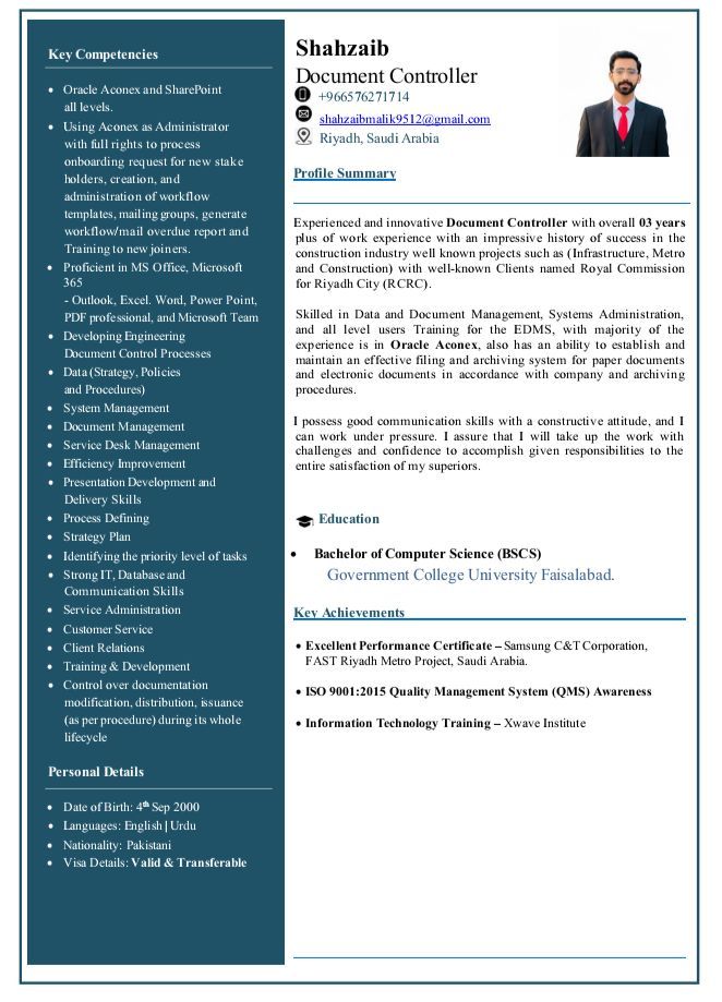 Experienced Document Controller with 3 + years of experience in construction projects in Saudi Arabia. Strong expertise in Oracle Aconex, document lifecycle management, submittals, transmittals, and coordination with clients, consultants, and contractors. Skilled in ensuring document accuracy, compliance, and timely approvals. Available with transferable visa