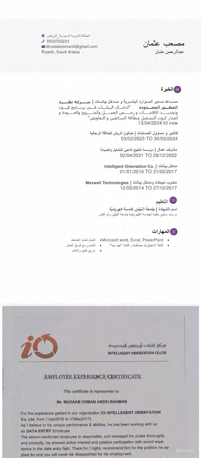 سوداني جامعي إقامة ورخصة خبرة بامتياز بادخال البيانات ومعرفة بالمواقع الحكومية خبرة جيدة جدا بالاشراف والمتابعة لشركات المقاولات والنقليات خبرة جيدة بالمبيعات والمشتريات